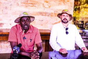 Mkurugenzi wa kampuni ya Defood ya nchini Poland (kulia) ,Adrian Pinko akizungumza na waandishi wa habari jijini Arusha kuhusu mradi wa kuwaunganisha wakulima na masoko Barani Ulaya kupitia mfumo wa kidijitali,(kushoto) ni Mkurugenzi Mtendaji wa Chama cha Wakulima Tanganyika (TFA),Justin Shirima.
